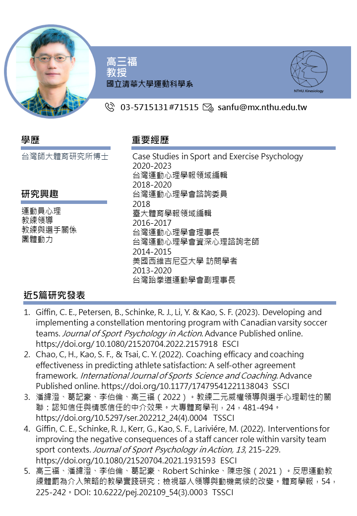 競技與教練科學研究所 Graduate Institute of Athletics and Coaching Science