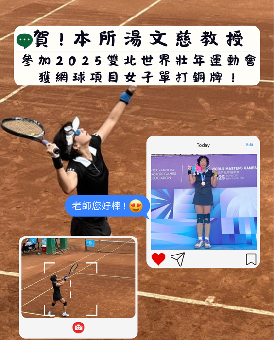 賀!本所湯文慈教授參加2025雙北世界壯年運動會獲網球項目女子單打銅牌!